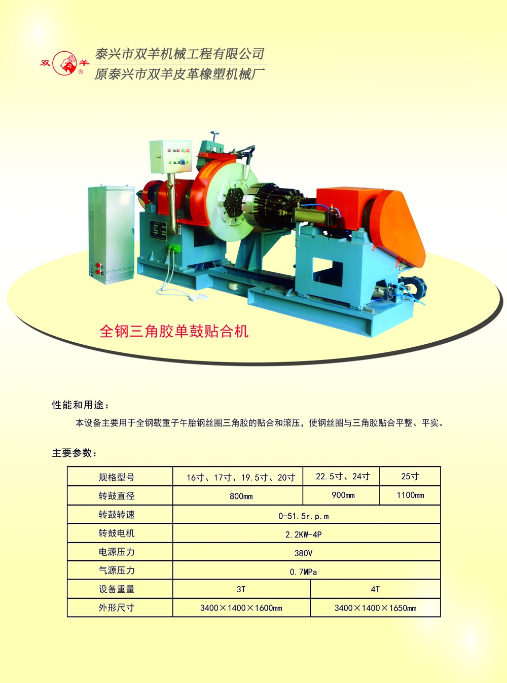 全鋼三角膠單鼓貼合機(jī)、胎圈傘貼機(jī) 發(fā)布者: 發(fā)布時間:2015-10-26 點擊量: 3115